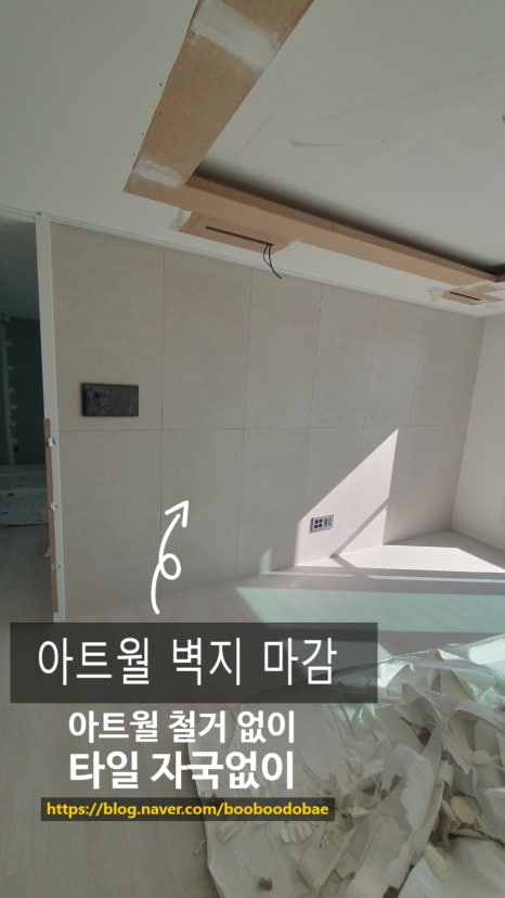 거실 아트월 타일 벽면 철거 (추가공사 x ) 벽지 마감